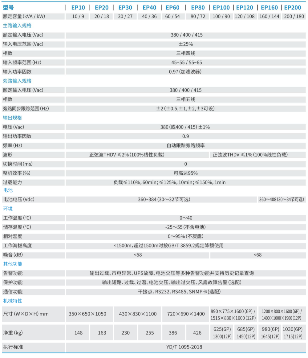 技术参数:(EP10-200KVA)
